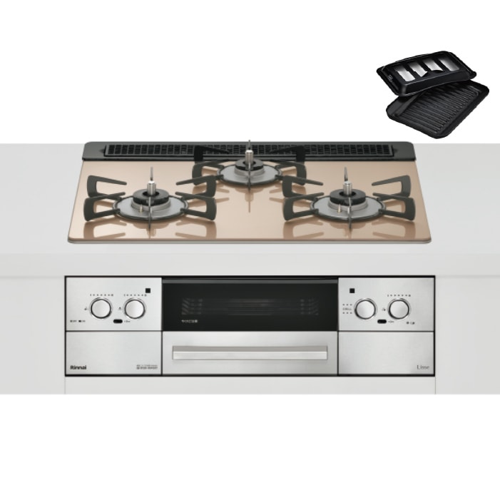 リンナイ RHS71W33L25RSTW-LP ビルトインコンロ ベイズ 水無し両面焼グリル 幅75cm プロパンガス用 左右強火力 カームシルバー Beiz ワイド幅 レンジフード連動 Rinnai93,950円(税込)
