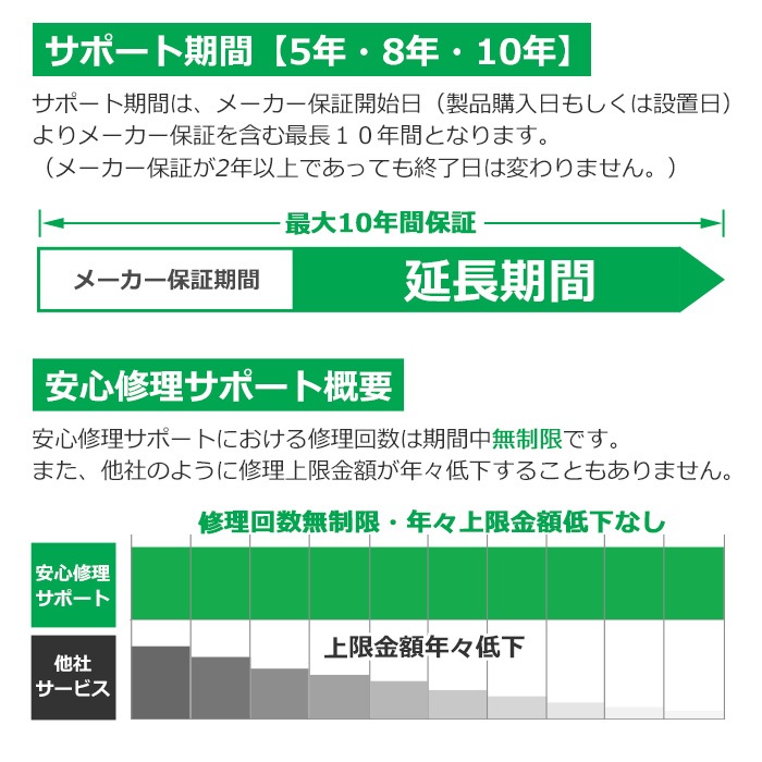 メーカー保証期間後の延長保証をご用意しているため、万が一の際も安心。