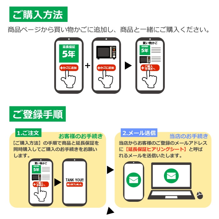 メーカー保証期間後の延長保証をご用意しているため、万が一の際も安心。