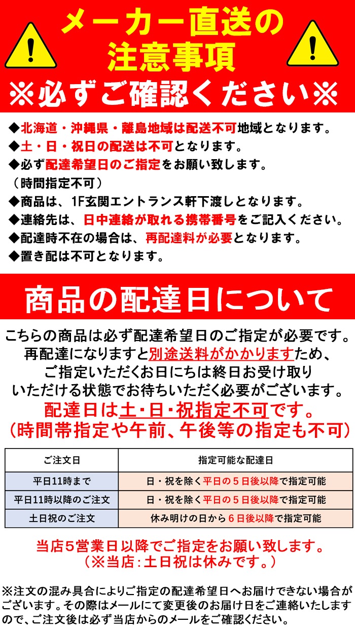 メーカー直送の注意事項について